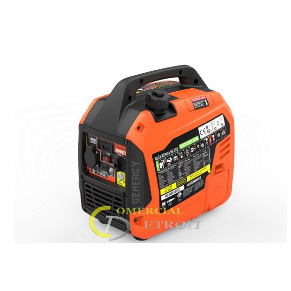 Sistema de estabilización / Stabilizer system InverterVoltaje - frecuencia / Voltage - Frequency 230V - 50HzAC 230V Máxima / Maximum (S2 5min) 2000WAC 230V Nominal / Rated (COP) 1800WAC 400V Máxima / Maximum (S2 5min) -AC 400V Nominal / Rated (COP) -Tipo por su número de fases / Number phase class Monofásico / Single-phaseFactor de potencia / Power factor 1Modelo motor / Engine model SGH80ECilindrada / Displacement 79ccTipo de motor / Engine type Gasolina, 4 tiempos OHV refrigerador por aire / Gasolina 4 stroke OHV air coolingNivel de presión acústica media 7mts LpA (Ralenti-nominal)Sound pressure level average 7mts LpA (Idle-rated) 53dB – 59dBNivel de potencia acústica garantizada LwAGuaranteed sound power level LwA 93dBTipo de arranque / Starting type Remoto (50 m), eléctrico y manual / Remote (50 m), electric and recoilCapacidad tanque combustible / Fuel tank capacity 4LConsumo al 25-50-75% carga / Consumption 25-50-75% load 0.37L/H — 0.57L/H — 0.8L/HAutonomía 25-50-75% carga / Long run time 25-50-75% load 10.8H —7H — 5HCapacidad y grado de aceite / OIl grade and capacity 0.5L — SAE10W40Nivel de aislamiento / Insulation grade FClase según calidad de aislamiento / Quality insulation class AClase según rendimiento / Performace class G2Estándar / Standard ISO 8528-13:2016Kit de transporte / Wheel kit NoDimensiones / Dimensions 440x290x445mmPeso / Weight 19.5kgReferencia / Item 13070